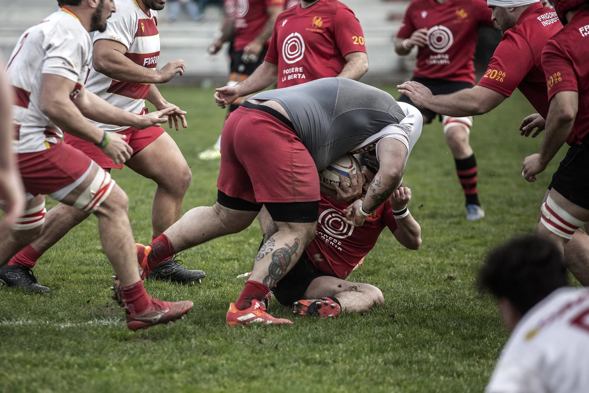 Il rugby è un racconto fatto di corpi che si scontrano e regole che li tengono insieme, di disciplina, impatto e rispetto. Ogni azione dura un istante, ma la fotografia interrompe il flusso del tempo per interrogare quel momento, trasformandolo in un racconto.